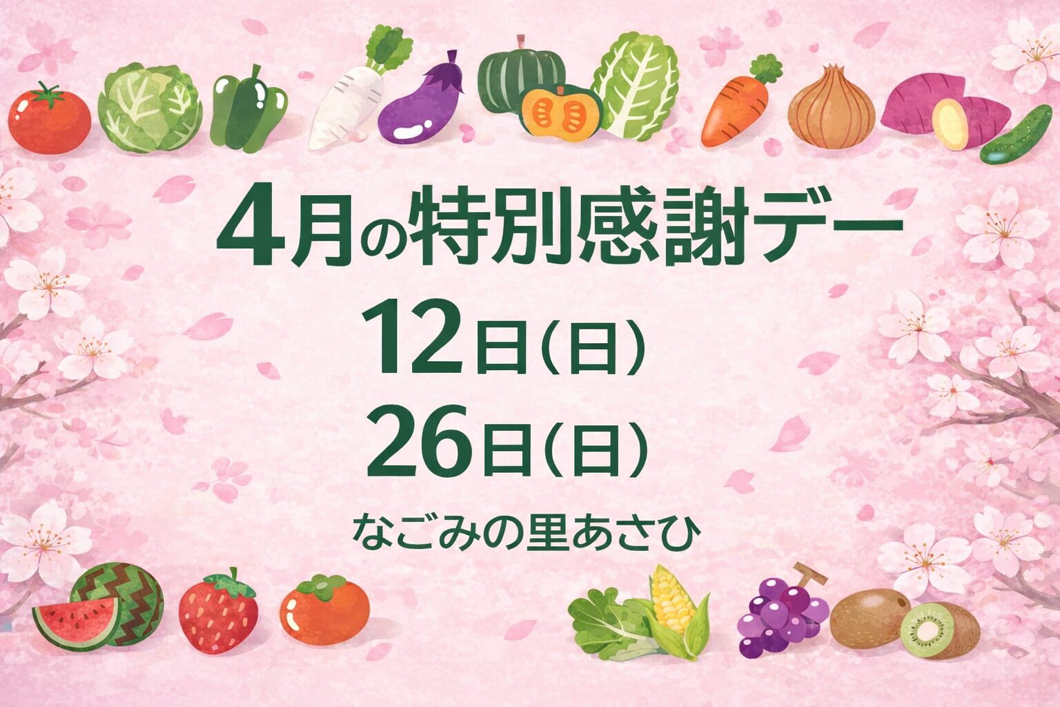 令和8年4月12日(日)、4月26日(日)の特別感謝デーのおしらせ